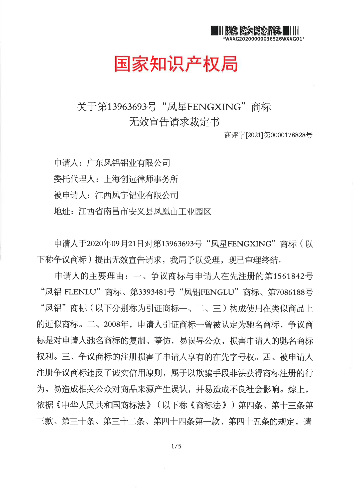 绍兴辉知队 | 国家知识产权局:“凤星”商标无效