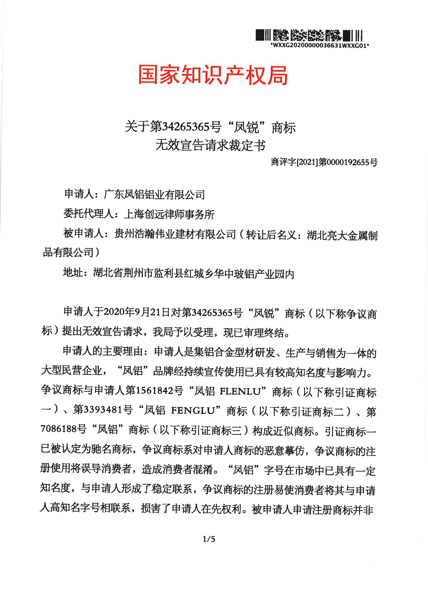 绍兴辉知队 | 国家知识产权局:“凤锐”商标无效