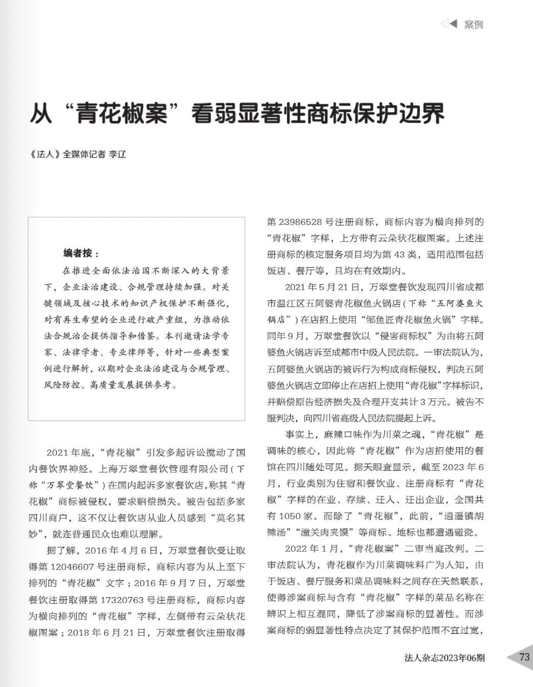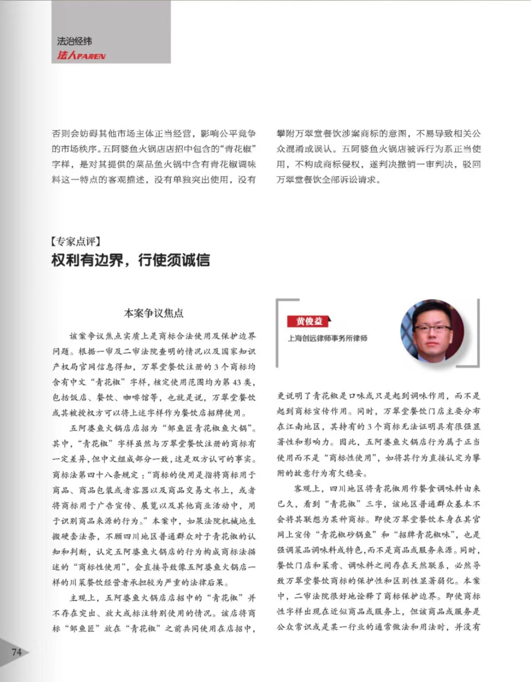 绍兴辉知简讯 | 辉知队黄俊益律师应“法治日报”旗下杂志邀请,就“青花椒”案发表专家点评