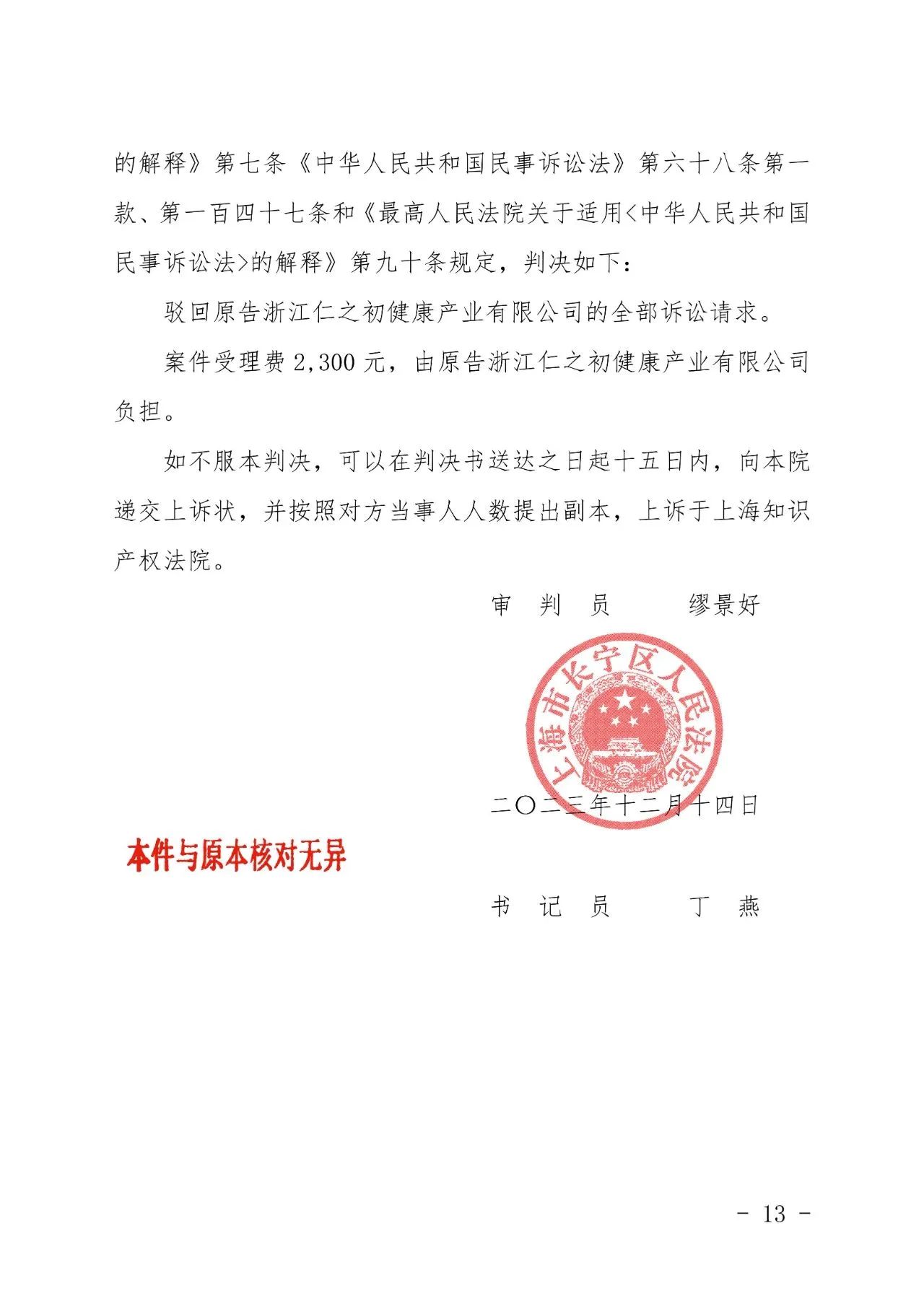 绍兴辉知胜诉佳讯 | “仁之初健康”著作权及不正当竞争纠纷案,法院:驳回全部诉讼请求!